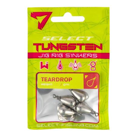 Ciężarek wolframowy Select Tungsten Jig Rig używany do budowania zestawu Jig Rig podczas łowienia ryb drapieżnych. Ciężarek Select wykonany jest z wolframu, który ma wyższy ciężar właściwy i większą twardość w porównaniu do swoich ołowianych odpowiedników. W związku z tym przy określonej wadze będzie miał mniejsze wymiary, co z kolei wpływa na zasięg rzutu, prędkość tonięcia i o wiele lepszą prezentację. Zestaw z ciężarkiem wolframowym jest bardziej subtelny i zwarty. Ciężarki posiadają wyraźne oznaczenie wagi co pozwala na szybką identyfikację.