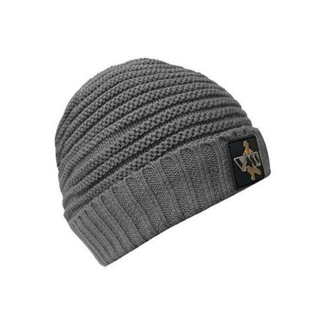 Vass Fleece Lined Ribbed Beanie Grey Rubber Badge czapka zimowa