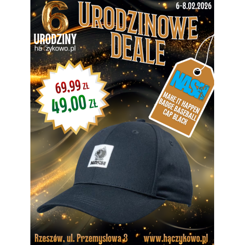 Klasyczna czapka z daszkiem z odprowadzającą wilgoć wewnętrzną opaską przeciwpotną i tylną regulacją na rzep oraz tkaną naszywką Nash.