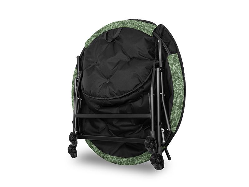 Fotel jest wykonany z tkaniny 600D na powierzchni z opatentowanym wzorem kamuflażu C2G. Ma wyjątkowo grubą i miękką tapicerkę na środku i wokół materaca.