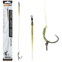 Przypon Slip-D-Rig wykonany został z wyjątkowo miękkiej plecionki Ultra Soft, która świetnie sprawdza się zarówno na twardym, jak i miękkim dnie. Zastosowano w nim solidny i niezwykle ostry haczyk typu Curve Shank, a na pętli D umieszczono praktyczną wkrętkę umożliwiającą szybką wymianę przynęty bez konieczności wiązania od nowa. Dodatkowo pozycjoner ustawia haczyk w optymalnej pozycji, co zwiększa skuteczność zacięcia, zwłaszcza w dolną wargę ryby. Przypon zakończony jest krętlikiem i rurką antysplątaniową, co zapewnia stabilność i porządek podczas zarzucania. Doskonale współpracuje zarówno z przynętami tonącymi, jak i typu balanced.