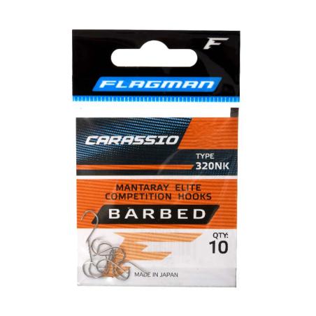 Flagman Mantaray Elite Carassio to seria niezawodnych haczyków wyprodukowanych w Japonii z wysokiej jakości stali węglowej. Mają klasyczny, okrągły łuk kolankowy, kuty grot, lekko wygięty w bok i skrócony trzonek. Mocny hak przeznaczony do łowienia gruntowego lub do mocnych zestawów spławikowych.