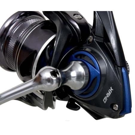 Doskonale wyważony kołowrotek, lekka i wytrzymała obudowa, wykorzystuje 9 łożysk kulkowych ze stali nierdzewnej. Aluminiowa szpula i rolka z ultra twardą powłoką pozwalają na swobodne stosowanie cienkich linek i żyłek, a udoskonalony mechanizm zapewnia ich wzorowe układanie. Wszystkie kołowrotki Onyx wyposażone są w lekkie szpule ze stożkowym ramieniem, co pozytywnie wpływa na odległość rzutów. Indeks S oznacza że na kołowrotku jest zainstalowana niskoprofilowa szpula. Składana rączka wykonana jest z aluminium. Jest wkręcana bezpośrednio, co eliminuje występowanie luzu. Płynna regulacja hamulca pozwala na szybką zmianę siły hamowania.