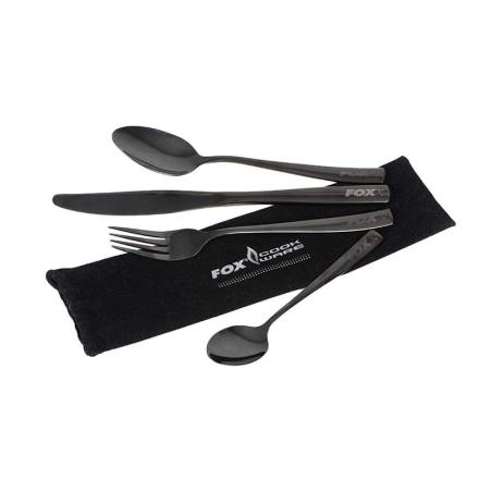 Zawiera oznaczone logo Fox: łyżeczkę do herbaty, nóż, widelec i łyżkę deserową.