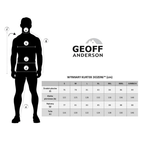 Geoff Anderson Dozer 6 to jedna z najbardziej dopracowanych kurtek dla wędkarzy na rynku. Każdy element został zaprojektowany i przemyślany tak, żeby dawać użytkownikowi maksimum komfortu i wygody. Pierwsze co rzuca się w oczy gdy dotkniesz kurtkę Dozer generacji 6 to materiał, z którego została wykonana. Najnowsze osiągnięcia w dziedzinie produkcji odzieży technicznej pozwoliły na użycie w 100% wodoodpornego i wytrzymałego materiału, który zachowa swoje właściwości przez wiele sezonów. Kurtka została tak skrojona aby zapewnić Ci jak najwięcej swobody podczas ruchu.