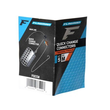 Flagman Quick Change Conectors to rozwiązanie do szybkiej wymiany przyponu podczas łowienia method feeder. Łącznik Flagman Quick Change pozwala na szybką wymianę przyponu i jednocześnie pełni rolę koralika-odbojnika, o który uderza koszyk podczas zarzucania. Flagman Quick Change Conectors wykonane są z wysokiej jakości materiałów. W opakowaniu znajduje się 5 sztuk.