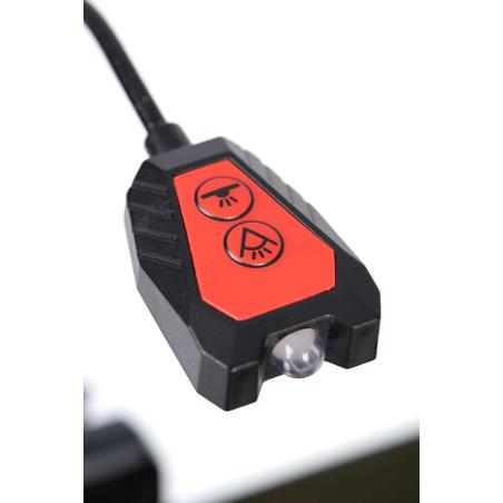 3 opcje światła LED: skierowane do dołu białe, skierowane do dołu czerwone i zewnętrzne białe.