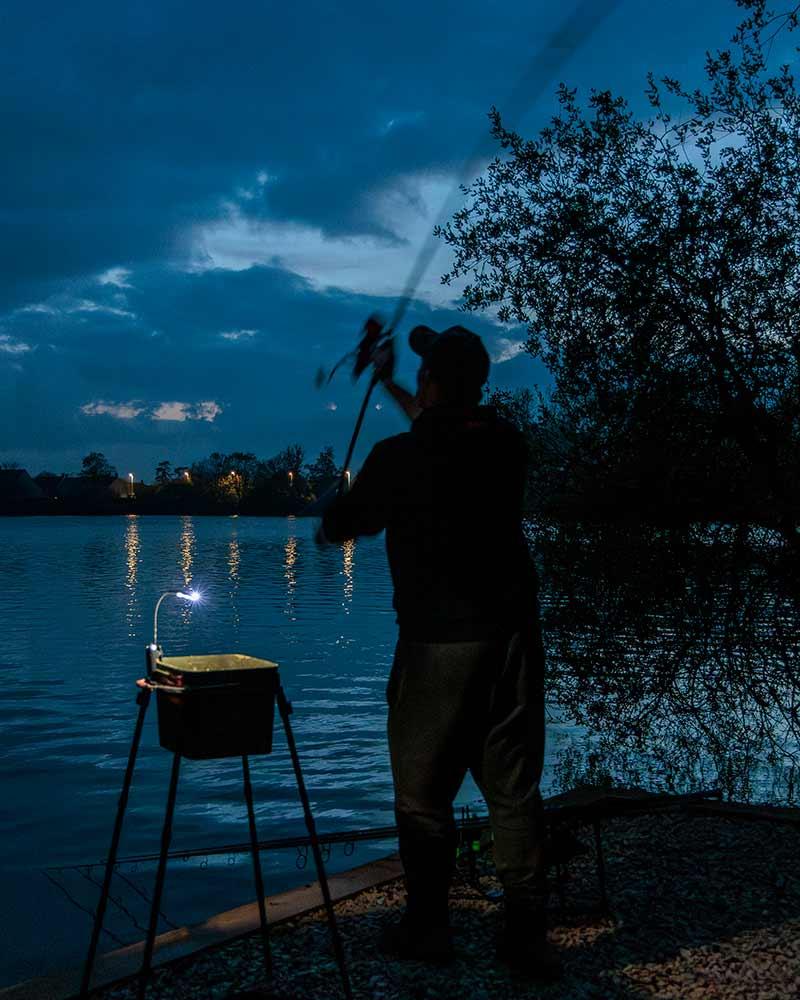 Przypinana do wiadra, oświetla miejsce z Twoimi przynętami i obszar ładowania Spomba.