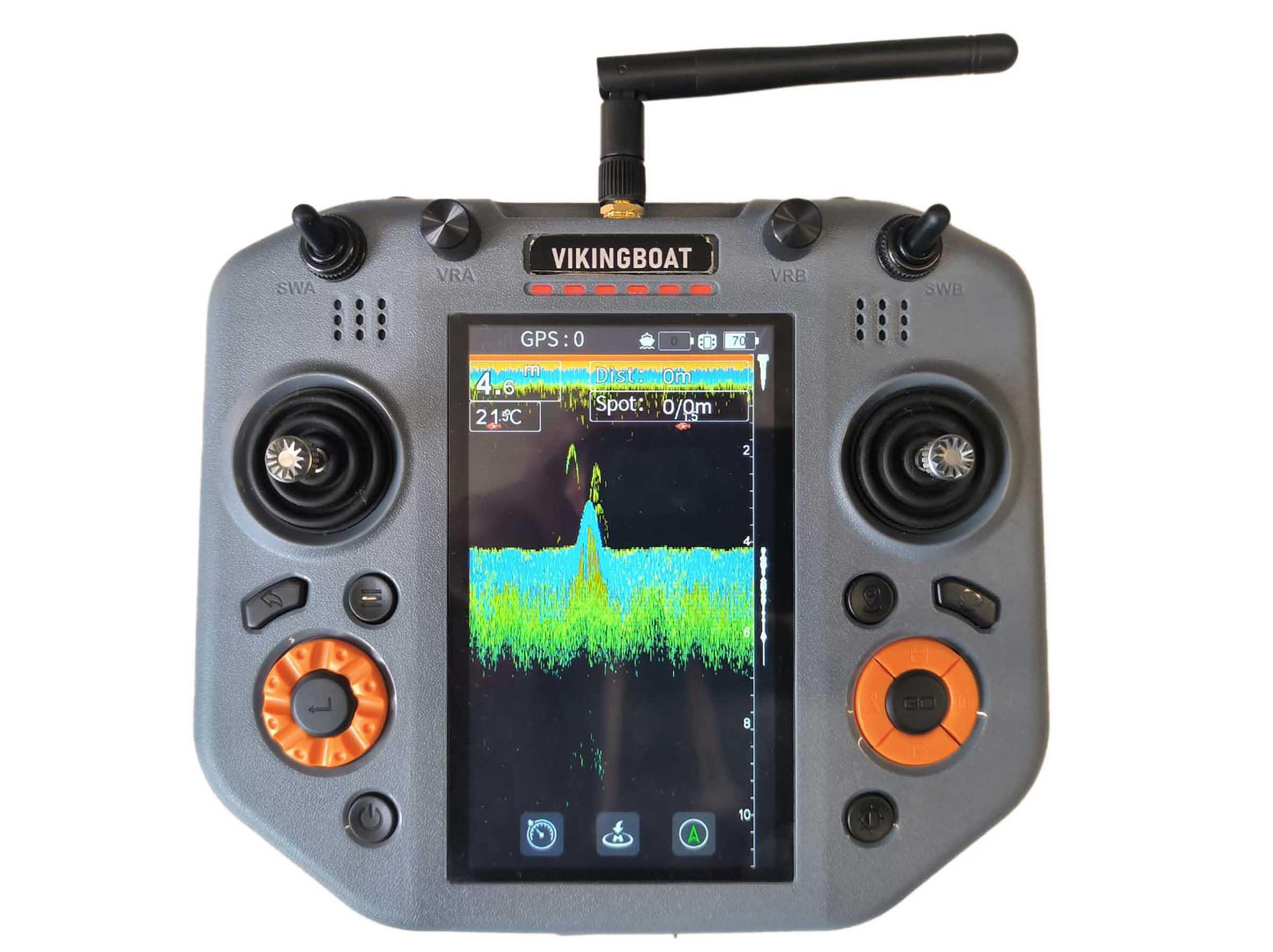 Nasza łódka posiada kolorową ECHOSONDĘ przeznaczoną na urządzenia takie jak telefon czy tablet, GPS oraz funkcję AUTOPILOTA.