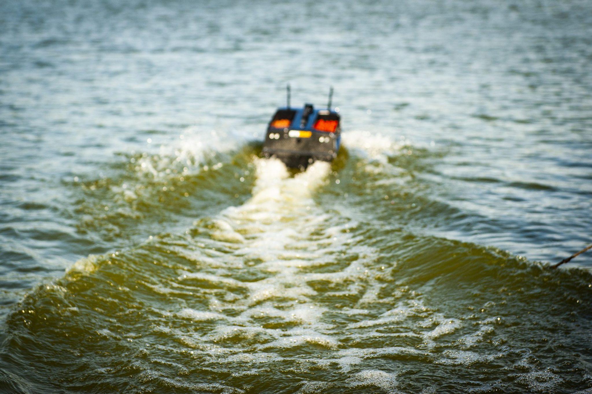 łódź wyposażona w dwa całkowicie niezależne silniki bezszczotkowe i dwa śmigła.