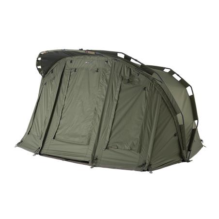 Drzwi namiotu wyposażono w dwustronne zamki, dzięki czemu można go otwierać z dowolnej strony lub tylko do jego części, co ułatwia obserwację bez konieczności rozchylania całych drzwi. Namiot wyposażono w przestronne przednie okna mające możliwość używania ich z moskitierą, przezroczystą "szybą" PVC chroniącą przed deszczem, lub zasłonięte. Duże otwory wentylacyjne z moskitierą i osłoną przed burzą i silnym wiatrem. Z przodu namiotu umieszczono praktyczne rzepy mogące służyć do przymocowania wędzisk.