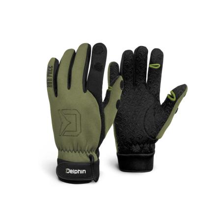Rękawiczki neoprenowe Delphin RWR Free zapewnią ciepło w dłonie nawet w najchłodniejsze dni. Dokładne wykończenie rękawic przenosi wędkarstwo zimowe na zupełnie inny poziom. Dużym plusem jest gumowana powierzchnia na dłoni, która wyposażona jest w antypoślizgową, warstwę z logo Delphin. Zdejmowane elementy na końcu kciuka i palca wskazującego, z możliwością mocowania na rzep, ułatwiają montaż drobnych akcesoriów i przyspieszą czas ich montażu. Aby zapobiec przedostawaniu się chłodu lub niechcianej wody do rękawic, wokół nadgarstka jest element wykonany z wszytej gumy, który można dodatkowo regulować za pomocą paska ściągającego z rzepem. Połączenie kolorów zielonego i czarnego sprawia, że rękawice RWR Free są idealnym towarzyszem zarówno podczas wędkowania, jak i innych zajęć rekreacyjnych.