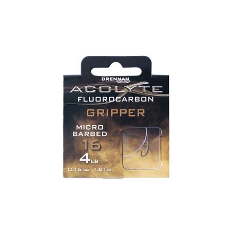 Haczyki Acolyte Gripper z mikro zadziorem ręcznie wiązane na fluorocarbonie Acolyte o długości 50cm zapewniając doskonałą prezentację przynęty łowiąc na spławik, czy feeder.