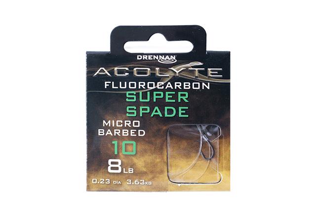 Haczyki Acolyte Super Spade z mikro zadziorem wiązane ręcznie na fluorocarbonie Acolyte 50cm zapewniając wspaniałą prezentację przynęty łowiąc na spławik, czy feeeder.