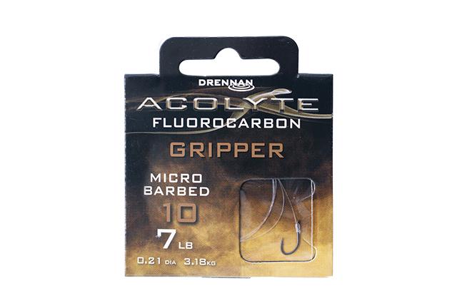 Haczyki Acolyte Gripper z mikro zadziorem ręcznie wiązane na fluorocarbonie Acolyte o długości 50cm zapewniając doskonałą prezentację przynęty łowiąc na spławik, czy feeder.