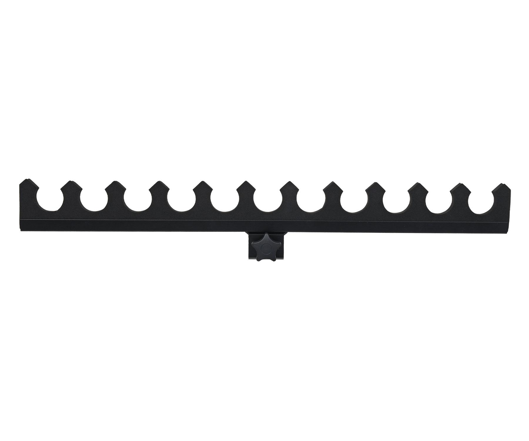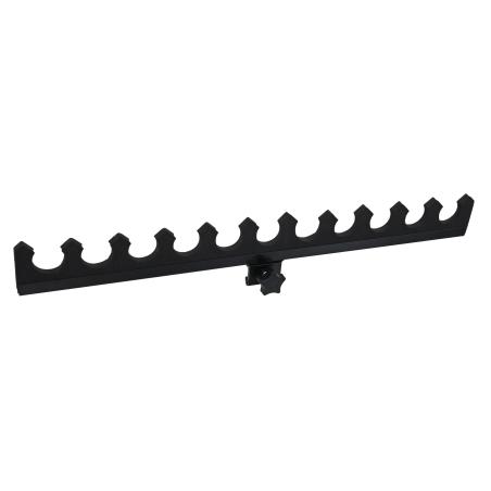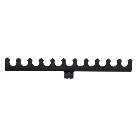 Flagman Eva Roost to miękki grzebień na 11 slotów, przeznaczony do niezawodnego ustawienia zapasowych wędek feederowych i matchowych podczas łowienia. Wykonany jest z metalu i miękkiego porowatego materiału EVA, który chroni blank wędki przed uszkodzeniami i ześlizgnięciem się. Grzebień wyposażony jest w solidne mocowanie, które umożliwia zamontowanie go na zawieszanym stole platformy lub fotelu wędkarskim.