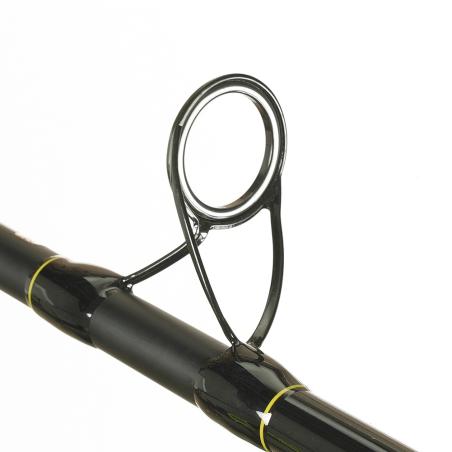 Seria trzech, trójskładowych wędzisk o szybkiej szczytowej akcji VDE- ROBINSON Competition Distance Feeder CSX została stworzona z myślą o stawiających pierwsze kroki entuzjastach zawodniczego feedera, którzy poszukują dobrze zaprojektowanych i dobrze wykończonych kijów. Jesteśmy przekonani, że wędki te będą doskonałym wyborem zarówno dla osób rozpoczynających przygodę z dystansowym łowieniem feederem jak i dla miłośników rzecznych feederowych łowów. Ich najczęstszymi zastosowaniami będzie wędkowanie na dużych odległościach, gdy chcemy dostać się do ostrożnych dużych ryb żerujących z dala od brzegu oraz wędkowanie w średnio i szybko płynących rzekach, z zastosowaniem ciężkich rzecznych koszyczków, niezbędnych do utrzymania zestawu stabilnie w nurcie. W całej serii zastosowaliśmy mocne węglowe blanki uzbrojone w przelotki typu “K”. Każdy z kijów wyposażony został w specjalnie wydłużoną rękojeść i mocny uchwyt kołowrotka, umożliwiające świetne ładowanie wędzisk podczas oddawania rzutów. Maksymalnie oddalona od kołowrotka i powiększona przelotka startowa ma dodatkowo pomagać w wykonywaniu jak najdalszych rzutów. Taki sposób uzbrojenia pozwala na zastosowanie dużych rozmiarów kołowrotków, a tym samym przenoszenie nawet największych obciążeń występujących podczas oddawania rzutów na daleki dystans. W serii znajdziecie dwa wędziska o długościach 3,6m i 3,9m i ciężarze wyrzutowym do 120g oraz jedno o długości 3,9m i ciężarze wyrzutowym do 150g. W zestawie znajdują się trzy wymienne szczytówki o krzywej ugięcia w zależności od modelu od 2 do 5oz. Szybkie blanki na jakich zostały zbudowane podczas holu doskonale amortyzują zrywy holowanych ryb, do minimum ograniczając ryzyko ewentualnej spinki. Z pewnością przyczynią się do wielu sukcesów, wielokrotnie będąc najważniejszym towarzyszem Waszych wędkarskich zmagań.