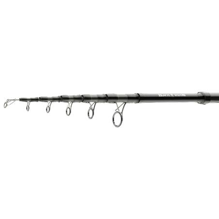 Teleskopowa wersja wędziska z popularnej serii Black Widow Carp imponuje niską średnicą blanku i solidnymi dwustopkowymi przelotkami. Bardzo wyważona akcja blanku doskonale radzi sobie z ekspediowaniem obciążników i przynęt z przedziału 60-100g na przyzwoite odległości. W trakcie holu olbrzymia rezerwa mocy pozwala zapanować nad każdym przeciwnikiem nawet ze znacznej odległości.