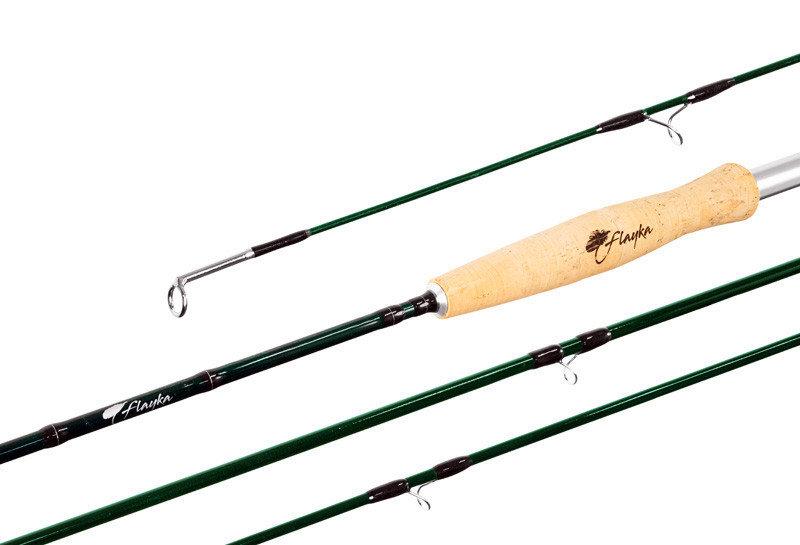 Pomyśleliśmy również o „królewskiej” dyscyplinie i przygotowaliśmy dla Ciebie serię wędek muchowych FLAYKA w popularnych i wszechstronnych ciężarach. Charakteryzują się przyjemnym działaniem parabolicznym, a ich wszechstronność może być stosowana przy łowieniu suchymi muchami, nimfami, a także przy łowieniu na mokro. Elegancki i smukły zielony blank z łatwością poradzi sobie z każdą docelową rybą. Przelotka prowadząca (dla AFTMA 5 dwa) jest dwustoplowa, wypełniona ceramiką, pozostałe przelotki są serpentynami. Wszystkie przelotki i tzw. haczyk jest wykonany w kolorze srebrnym. Każda część blanku jest oznaczona kropką w celu szybkiego i łatwego montażu, dzięki czemu cała wędka będzie pięknie zestrojona w jednej linii. Na rękojeści z wysokiej jakości korka portugalskiego przedstawiono sztuczną muchę. Uchwyt kołowrotka jest wykonany z lekkiego aluminium. FLAYKA nie należy do szybkich i ostrych wędek, więc z pewnością spodobają się współczesnym łowcom popularnych technik nimf. Wędki są dostarczane w twardym